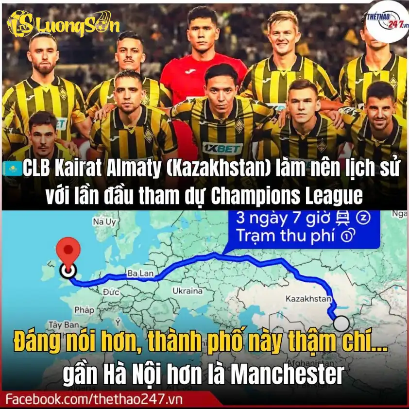 Anh em thử tưởng tượng xem, các ông lớn châu Âu như Bayern Munich, PSG, hay Man City sẽ phải bay bao xa để đến với Almaty? Khoảng cách từ Almaty đến các trung tâm bóng đá lớn của châu Âu thực sự “khủng”: Munich 4.900 km, Paris 5.500 km, London 5.600 km, và xa hơn nữa là Barcelona (5.900 km) hay Madrid (6.400 km)!